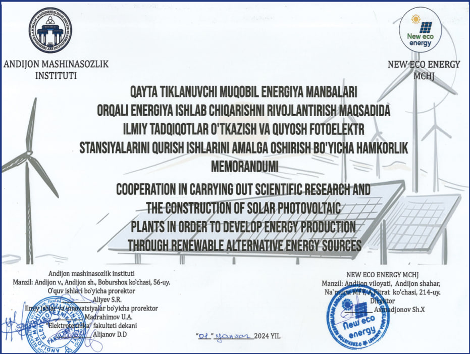 Andijon Mashinasozlik instituti (MEM) Muqobil energiya manbalari fakulteti