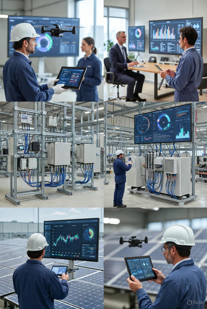 Quyosh va shamol manbalarini integratsiya qilish Qayta tiklanuvchi energiya manbalarini uzluksiz va samarali tarzda energetik tizimlarga ulash. Yer uchastkasini baholash va resurs tahlili Quyosh va shamol resurslarini aniqlash, texnik-iqtisodiy asos (TIA) tayyorlash. “Kalit topshirish” EPC loyihalari PV stansiyalarni loyihalashdan tortib ishga tushirishgacha bo‘lgan to‘liq EPC sikl.
